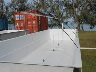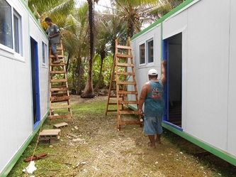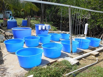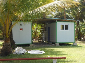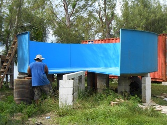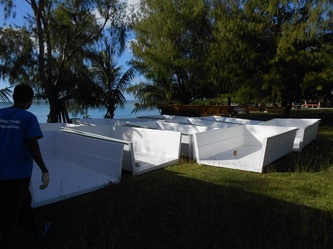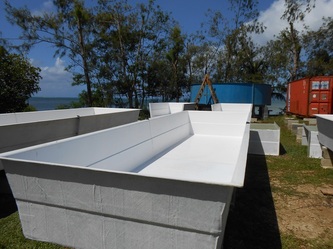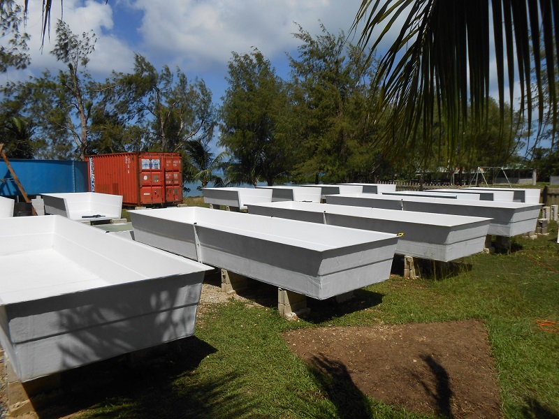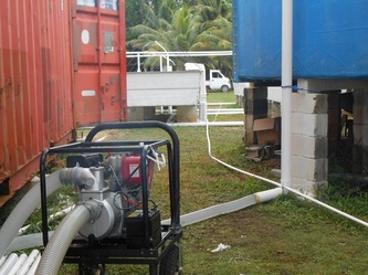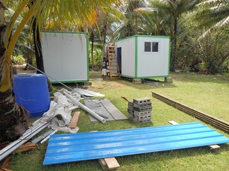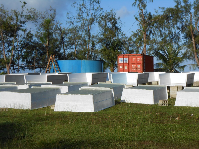 March 7, after installing a pumping by-pass system and also repairing and reinforcing the main sea-water storage tank, the hatchery is now fully operational, but still waiting for the POWER to be connected to the site; in the meantime we and the electricians are back working on the house containers.