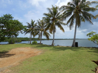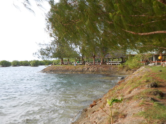 The clearing of the trees has started on 23 Oct 2013 and now the real size of the site is revealed; also today we could see the channel very clearly as shown here, it's 200 ft wide and at least 3/4 mile long, bringing clean ocean water from the reef right to the shore. We have our own shower block already and a small private bay to keep our future boats.