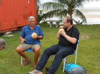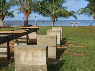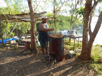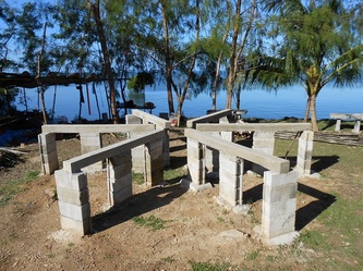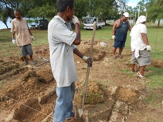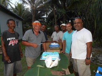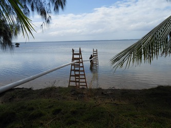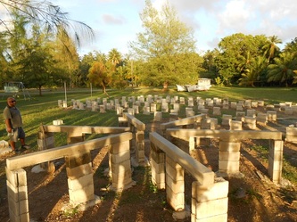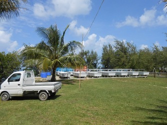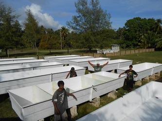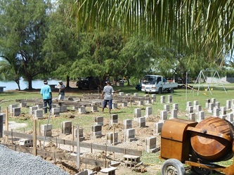 Now on 29 Nov, finishing all the 144 concrete footings for our raceways etc, we are adjusting the final level for each structure and by next week preparations will be finished and waiting for the hardware from China expected here in Yap by Dec 26. This great job was achieved thanks to the assistance of my partner Gus and our contractor 'supervisor' John, plus the hard work of our diversified team: master builder General Julius, truck driver 'dynamite' Jerry, carpenter 'all rounder' Gilbert and last but not least, Daniel the machine operator and 5 star BBQ chef who served us the best 'Turkey tails', crabs, lobsters & fish every Friday after each week's work. Congratulations and thanks to all; the final completion will start in January next year and if the clams want to 'cooperate' we will be 'in business' & breeding by early February, probably a 'world' record'!