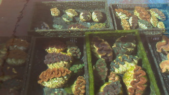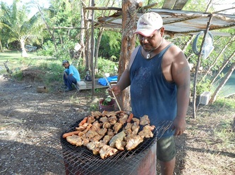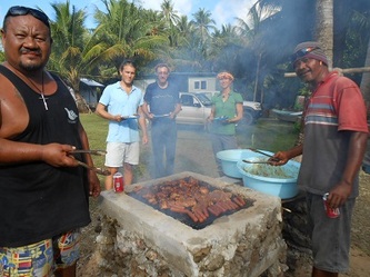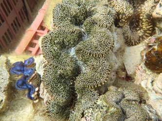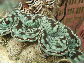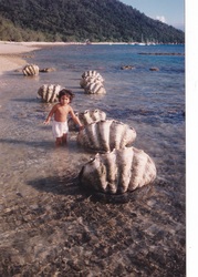 In September we had the very anticipated visit of Colette Wabnitz, SPC's (New Caledonia) expert specialized in aquarium trade and aquaculture; she was impressed by the production we did get in such a short time and also by the variety of colors of our brood-stock. She also took some DNA samples for identification of the new species Tridacna Noae recently described in some Pacific islands.We took the opportunity to test our brand improved new 'stone age' BBQ with turkey-tail, chicken, pork-chops, sausage etc. And last but not least, see here some pictures of 5 weeks old Maximas, and 5 months old Derasas!