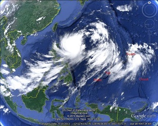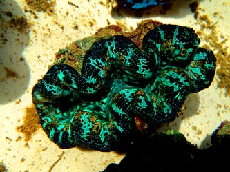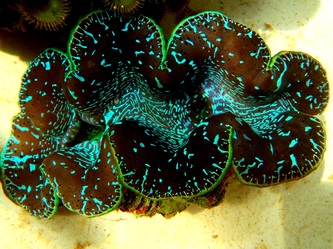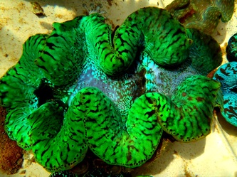 It's now the end of July and after a succession of 5 tropical depressions in 4 weeks, we finally get some sunshine to take these pictures with my underwater camera. The pictures of the juveniles were taken AFTER the cleaning operation, all you see is 'patches' of 2 - 3mm clams ( Derasa & Maxima mixed ), not dirt or sand, some have 5 clams, some have dozens, some must have hundreds. Altogether we estimated having around 50.000 juveniles in the first 3 months of breeding, second phase coming soon as soon as this crazy weather stops; unfortunately it still does not look good as a 'monster' is building up East of Guam and sucking in all clouds from Palau to Pohnpei, giving us very strong continuous winds with heavy short showers. See here a Google Earth picture of the "Dance of the T.Ds" taken on 29 July; fortunately these 2 fizzled out and the third one is now a Typhoon on it's way to Taiwan or Japan! We can't wait to see what other amazing colors we will get in all those clams we produced?