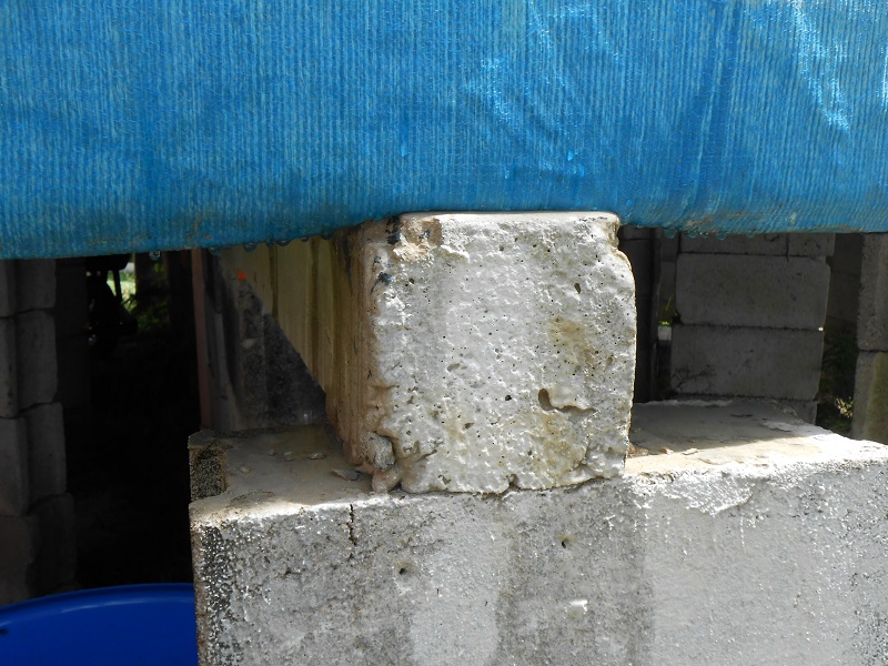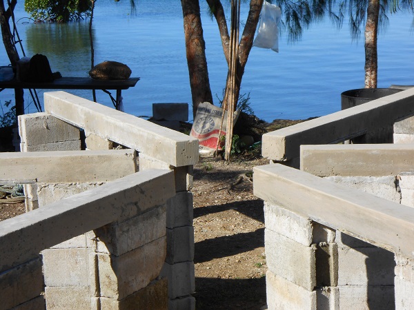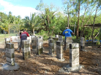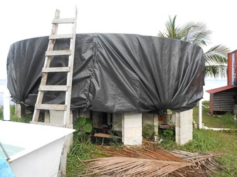 Dec 6th 2013, as advised by our water-storage tank supplier we made some final reinforcements on the foundations; notice the water surface in the background of the picture, it's not a lake, it's Yap's lagoon usually as calm as a lake, what a site!
