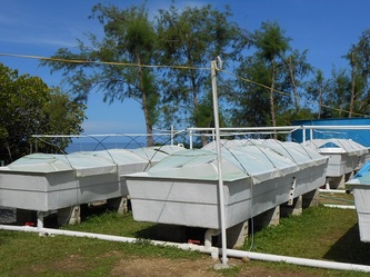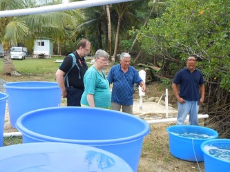 Once we had the power installed, the real hatchery work started with collecting the brood-stock, testing all the equipment and fixing all the 'bugs' in our system, like air and/or water leaks, pumping problems, initial staff basic training etc. In between all this we had the visit of the Australian Ambassador to FSM (photos later) and a delegation from the Swedish Embassy also, all very interested in what we are trying to do here in Yap.