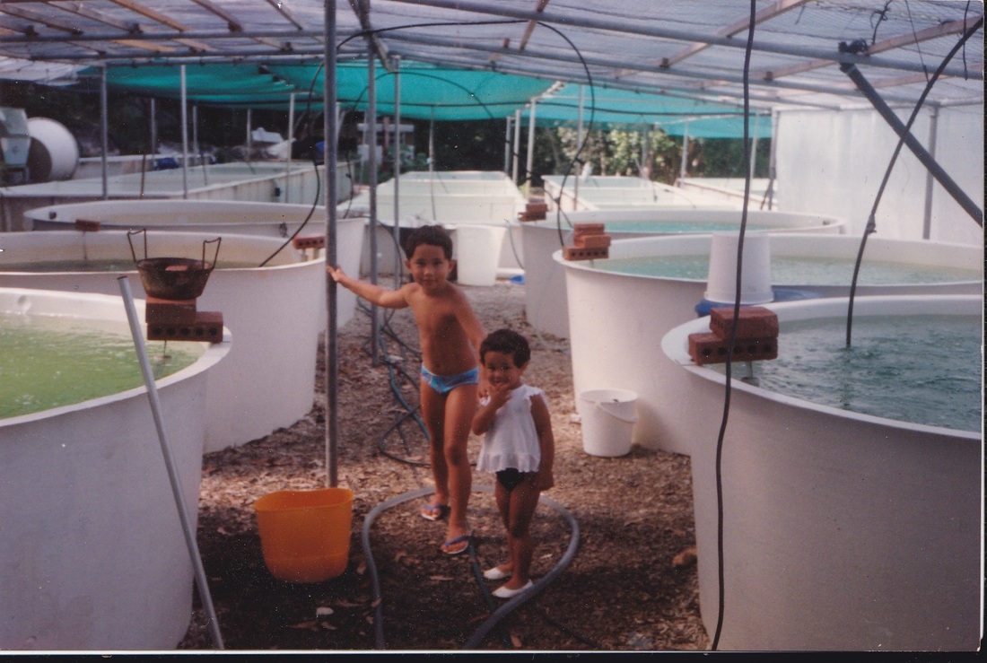 Then in April started the spawning trials, first with Derasa brood-stock imported from Palau almost 30 years ago but they did not seem ready and gave only small quantities of eggs, then later we tried the local Maximas from the reef, but these were at first very 'uncooperative' as they refused to spawn during daytime hours and were always going off at night, when controlled spawning is much more difficult due to constant attacks of millions of sand-flies and mosquitos. After a few failures we finally got them under control but then another bad surprise came and destroyed 7 raceways with larvae after extremely have rains dropped the salinity in such short times that our pumping system could not cope with.