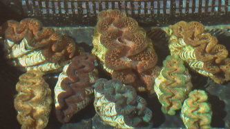 Our first spawning of Derasa & Maxima was in the first week of May; the biggest Derasa from that lot is about 4 months old and now 17mm as seen on the US 10cts coin, all those 'patches' of clams in the raceway have between 10 to 50 or more clams.