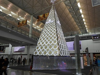 The pictures below show the coverage of the raceway (5.6m x 1.4m) after we put back those 2.5M juvenile clams; what you see is only clams & nothing but clams one day after the cleaning process. Also a very modern Christmass tree we saw at Hong Kong airport on a trip to Hainan in Dec 2014, just before the hostile take-over 2 weeks later.