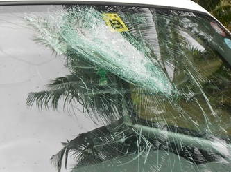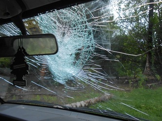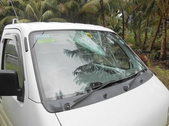 Above shows the windscreen of the hatchery's truck after the savage midnight attack in November 2014.